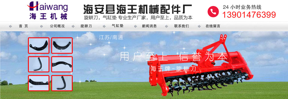 (江蘇省) 海安縣海王機(jī)械配件廠,我廠位于江蘇省南通市海安市,企業(yè)專生產(chǎn):旋耕刀(旋耕刀片,旋耕機(jī)刀片),氣缸墊(柴油機(jī)、汽車發(fā)動(dòng)機(jī)氣缸墊,進(jìn)排氣墊)、同時(shí)生產(chǎn)各種規(guī)格的機(jī)油管,柴油管,回油管,輸油管,氣缸墊模具,塑料、橡膠模具,冷沖壓拉伸模具等。